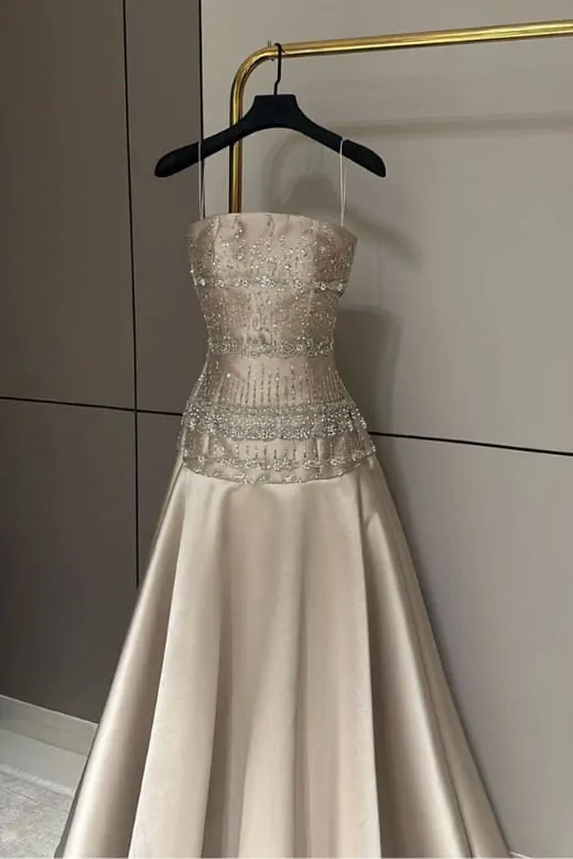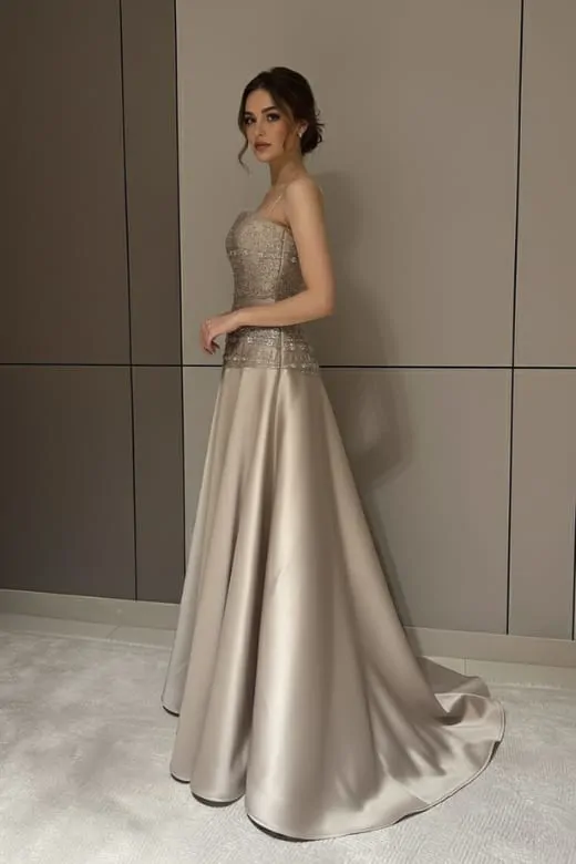 فستان سهرة خامة ميكادو مع خرز فاخر