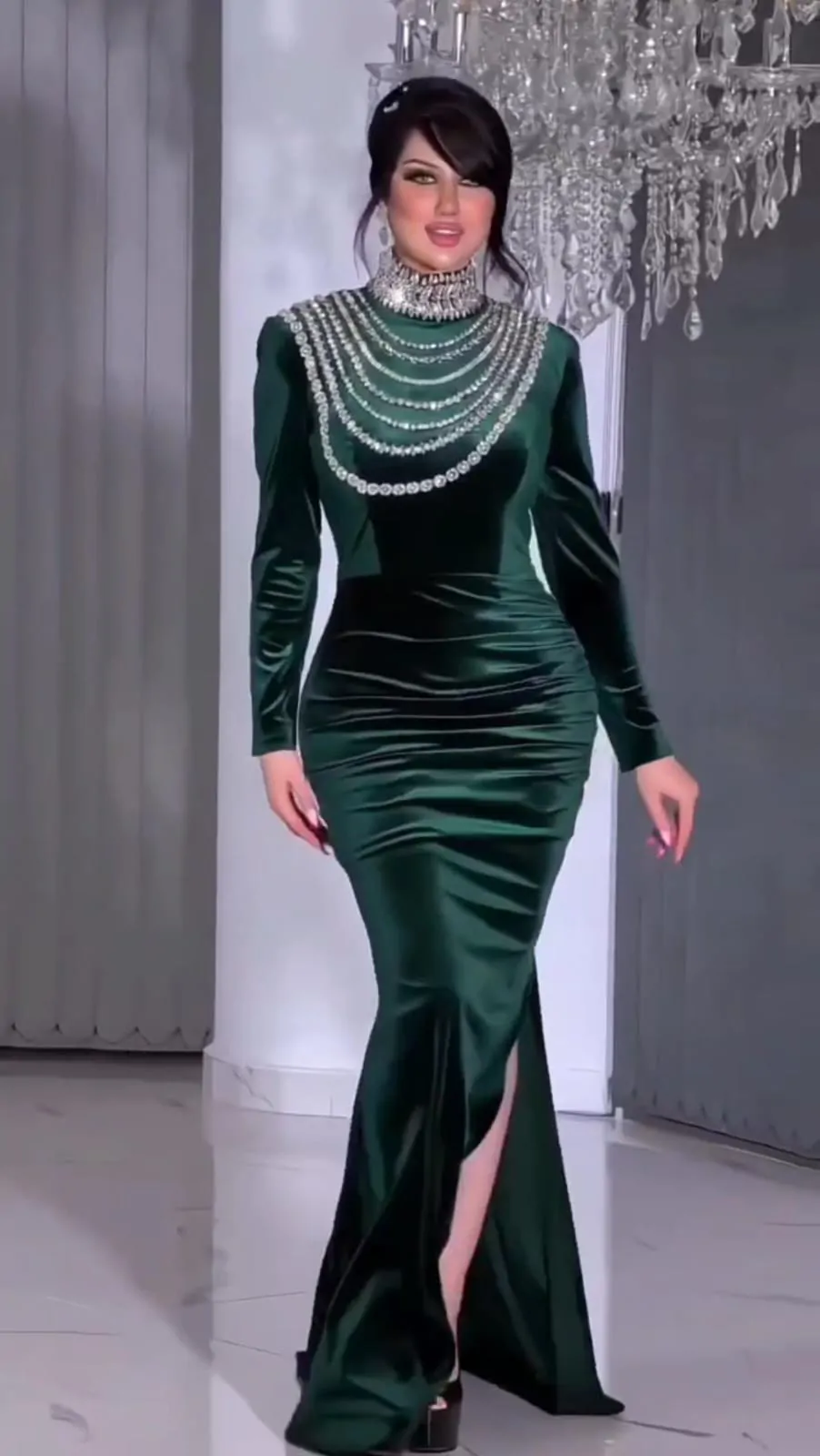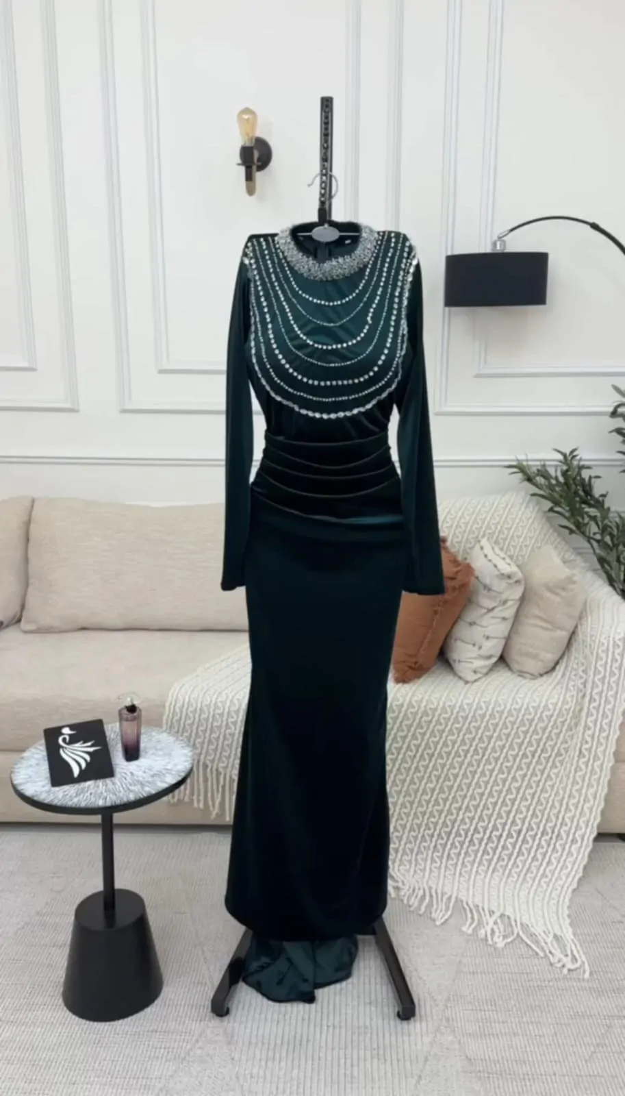 فستان سهرة مخمل مع تطريز يدوي فاخر
